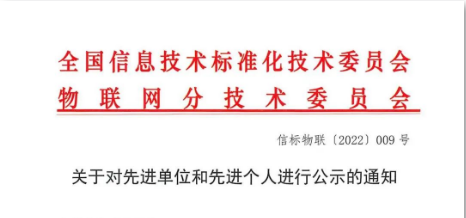 近日,全国信息技术标准化技术委员会物联网分技术委员会对2022年度先进单位和先进个人进行公示,豪尔赛科技集团股份有限公司(以下简称“豪尔赛”)首席技术专家刘姝同志荣膺“2022年度先进个人”。豪尔赛技术专家获得此项荣誉,代表了行业对豪尔赛技术实力的高度认可和对豪尔赛专家的充分肯定。