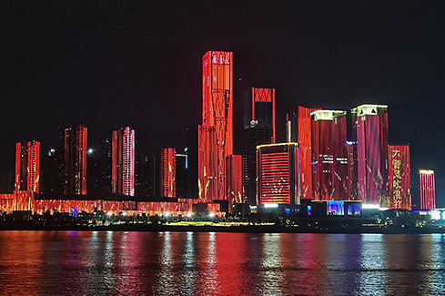百年风华,红色长沙。7月1日晚,星城长沙上演了庆祝中国共产党成立一百周年的主题灯光秀,长沙“一江两岸”城市夜景灯光全面亮起。当夜幕降临,眺望湘江,两岸楼宇气势恢宏,目光所及之处一片中国红。20公里的湘江水岸,铺陈着百年历史长卷,向党深情告白,向祖国传递祝福,向人民感召力量。长沙人民用这山水洲城的满城璀璨,为党的百岁生日献上贺礼。