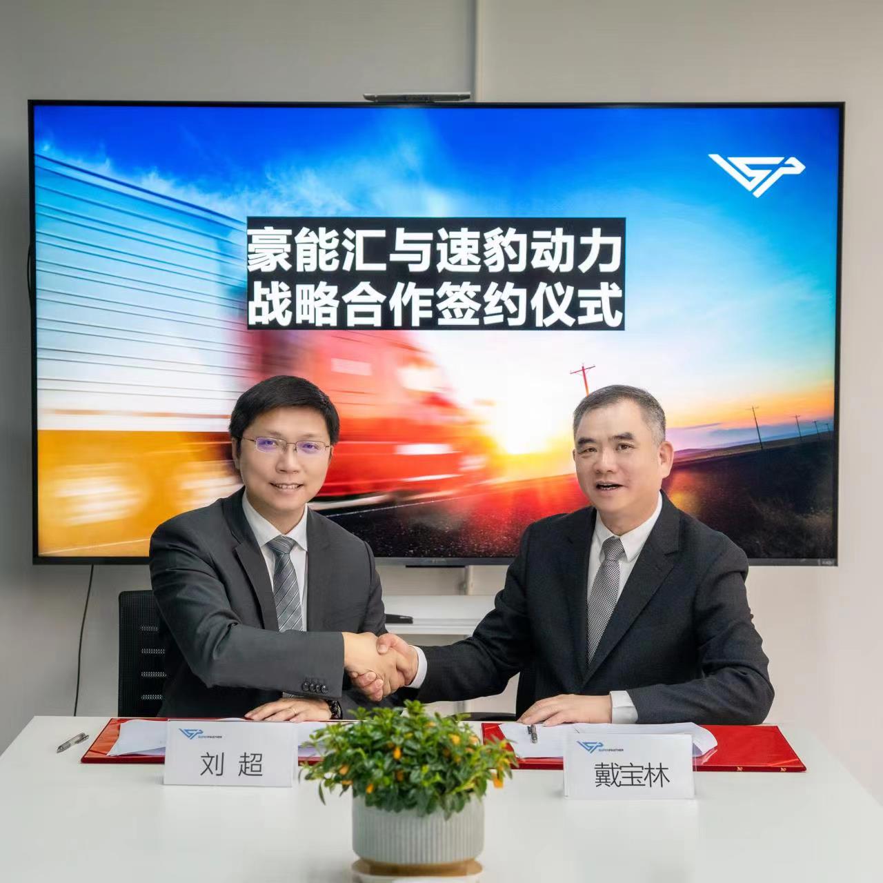 2023年 4月28日,北京豪能汇新能源科技有限公司(以下简称“豪能汇”)与江苏速豹动力科技有限公司(以下简称“速豹动力”)战略合作签约仪式在江苏省常州市隆重举行,双方有关人员共同出席了签约仪式,此次战略合作标志着双方将合力进军绿电交通产业,携手共赢美好未来。豪能汇董事长戴宝林先生在速豹动力董事长刘超先生的陪同下,参观了搭载全球最领先科技的速豹换电重卡功能样车,双方进行了亲切友好的互动交流。