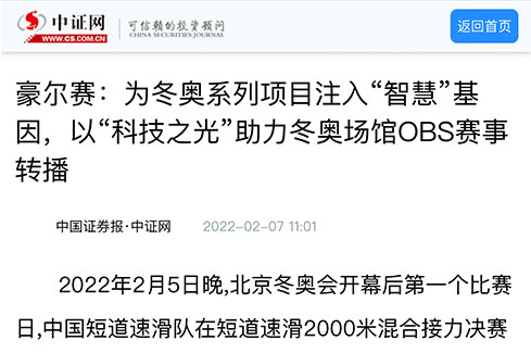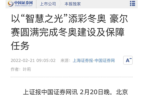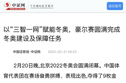 2月20日晚,北京2022年冬奥会闭幕式在国家体育场“鸟巢”举行,国际奥委会主席巴赫盛赞北京冬奥会是一届“非凡”“卓越”的盛会。回顾本届冬奥会,我国用高质量的场馆、高规格的服务、高科技的设备,为全世界的运动员和观众奉献了一场长达17天的冰雪盛宴。巨大成功的背后,离不开众多提供奥运保障的幕后英雄,科技创新型上市企业豪尔赛就是其中之一。
