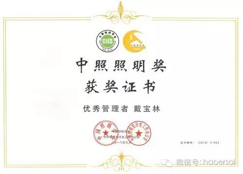我司集团董事长戴宝林先生荣获“优秀管理奖”