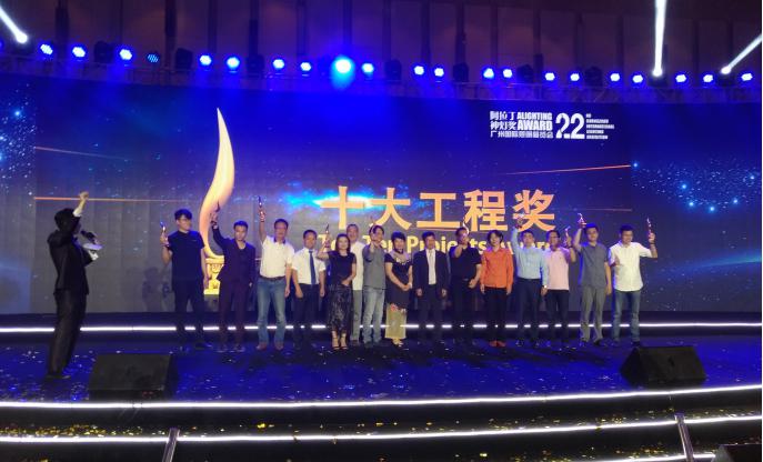 2017年6月9日晚,2017年第五届“阿拉丁神灯奖颁奖典礼暨广州国际照明展览会欢聚晚宴”在南丰朗豪酒店隆重举行,晚会云集了几百名全球照明行业领袖,举杯共庆,共同庆祝这特殊而又意义非凡的照明盛事。而获得阿拉丁神灯奖的企业则成为晚会最璀璨的焦点。晚会现场为2017年第五届阿拉丁神灯奖的“最佳人气奖”、“十大产品奖”、“十大设计奖”、“十大技术奖”和“十大工程奖”隆重颁发了奖杯和证书。我司“北京保利国际广场夜景照明工程”喜获“2017阿拉丁神灯奖--十大工程奖”。同时,做为第三、四届终审委员和本次颁奖典礼的特邀嘉宾,我司董事长戴宝林先生也为2017阿拉丁神灯奖最佳人气奖代表颁发了奖杯和证书。