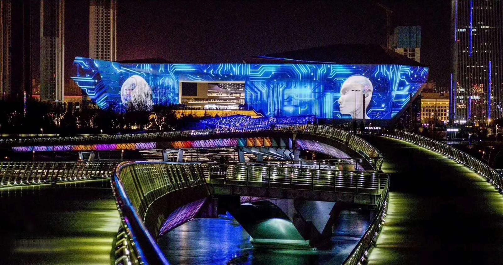 长风文化商务区的核心区——文化岛平台,总占地面积是16万平方米,分为上下两层,设计有双层交通系统和绿化系统。设计师用“岛”的创意,把汾河水引入基地形成汾溪,然后把平台整体抬升,形成了一个岛。从这里出发向西北、正西和西南三个方向发散出三条轴线,形成五个风格各异的功能区,分别是北部会展区,中部文化艺术博览区、行政会议中心区,南部商务办公区和西部行政办公区,五个功能区相互关联、相互照应,体现出系统功能的优化和放大。