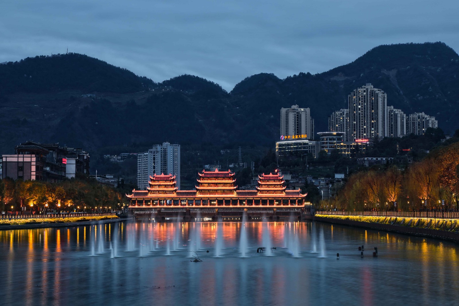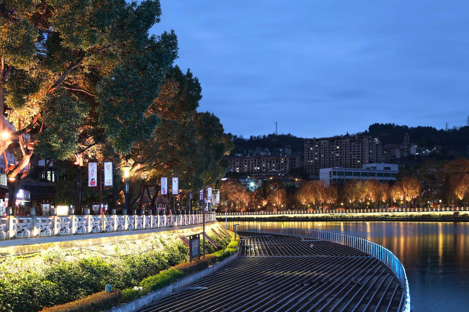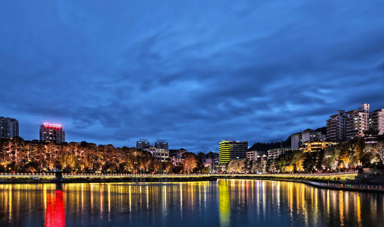 “蓝天映碧水,清风拂绿地;山水在城中,城在画卷里。”傍晚时分,余晖斜照重庆市黔江区武陵水岸,各色灯光把水面染得五彩缤纷,美如画一般的景致,不得不让人掏出摄像机,定格那美丽的瞬间。一座整洁、干净、和谐、有序、靓丽的“城市客厅”映入眼帘。
