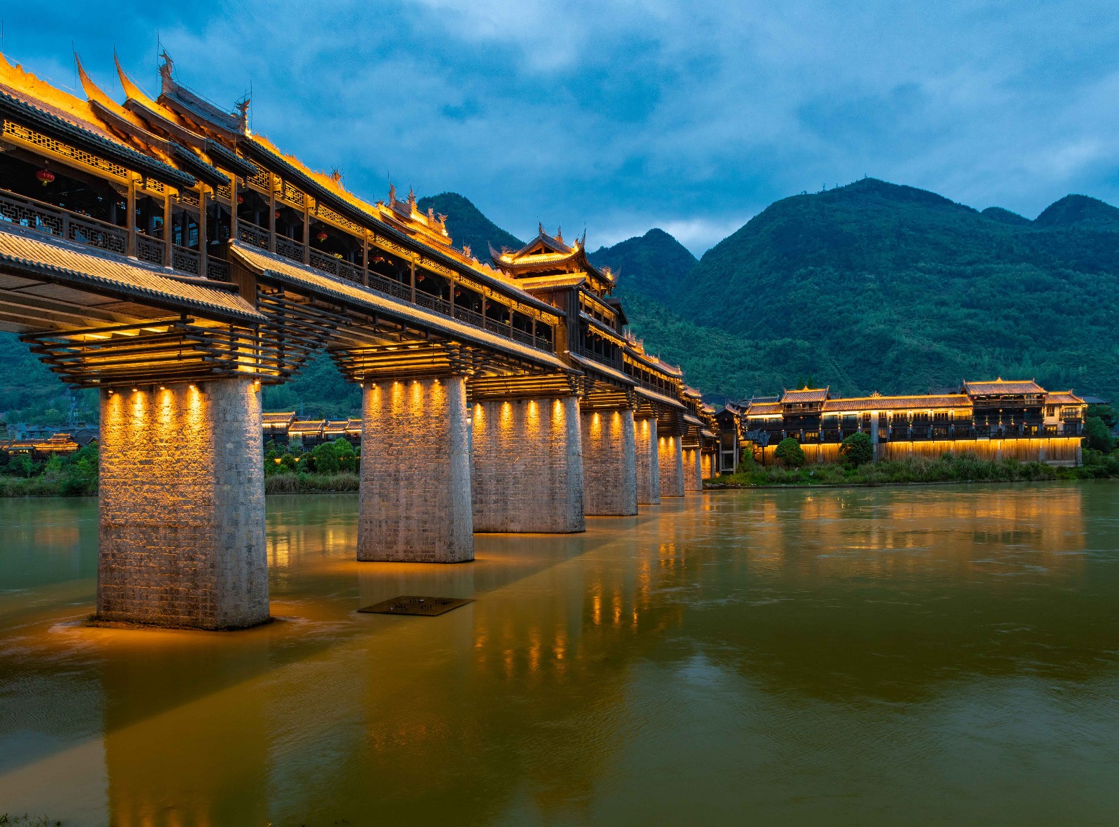 长龙卧波阿蓬江,璀璨夜色濯水情。濯水古镇兴起于唐代,兴盛于宋朝,镇中交织着码头文化、商贾文化、场镇文化,同时也承载着巴文化、土家文化与汉文化的融合、传承与创新。