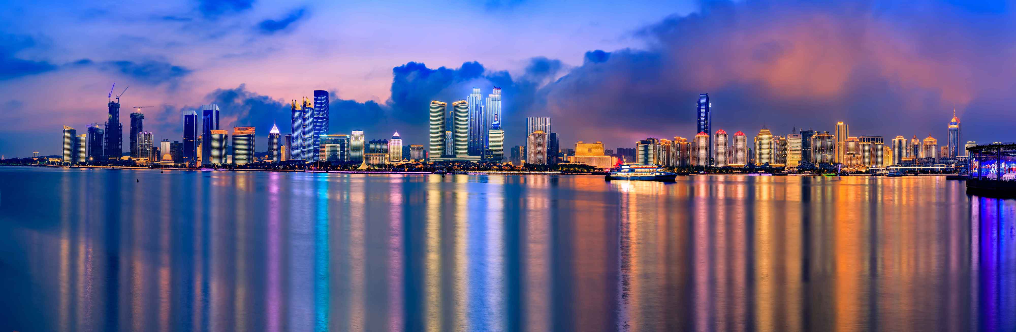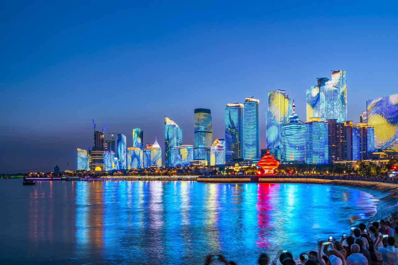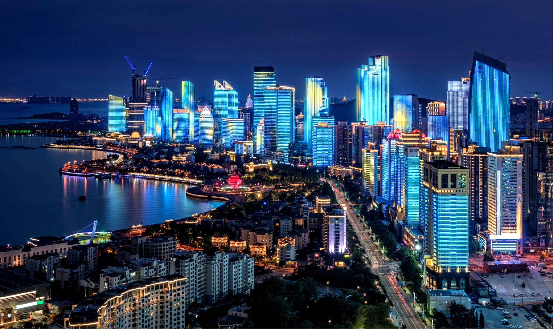 浮山湾区域是上海合作组织青岛峰会外场区域,也是青岛市高层建筑最为集中的区域之一,亮化更加复杂,效果也更加丰富。该区域内利用100余栋高层建筑点亮都市的夜色,通过动画的方式营造欢乐的灯光海洋。
